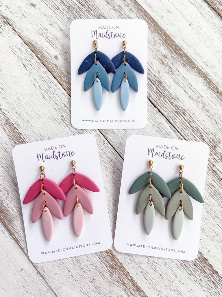 Crafted by hand, the Alexandra Earrings feature a unique petal design. The stunning ombre shades of pink, green, and blue make a statement and add a touch of elegance to any outfit.