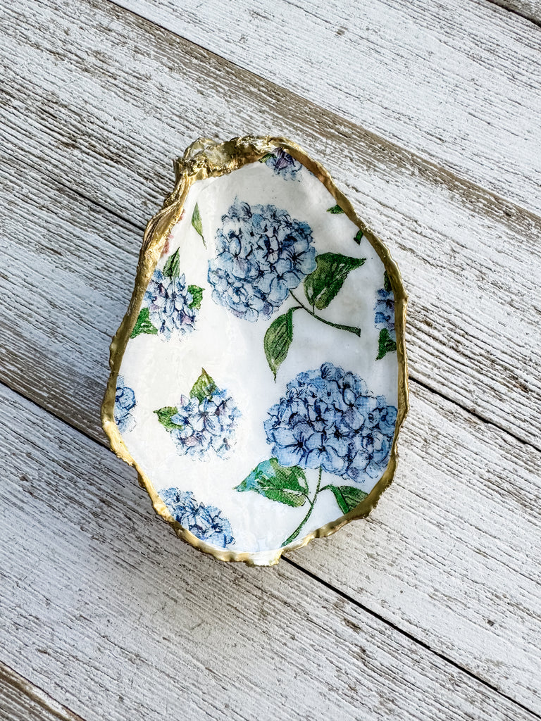 Each oyster shell is carefully cleaned, decoupaged, and sealed to create a one-of-a-kind decorative dish that’s perfect for holding rings, earrings, or other small treasures. Ideal for nightstands, vanities, entry tables, or as a thoughtful gift, this oyster shell dish brings a hint of seaside sophistication to any room.